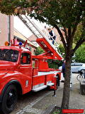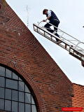 Zaterdag kwam de ladderwagen van Stichting Oud Brandweermateriaal Winschoten een handje helpen. De vlaggenmast moest worden gerepareerd en dan is dit materieel heel erg nuttig.