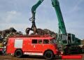 Zou te gek zijn voor woorden. Brandweerman Gerrit Schaafsma stopte na 24 jaar als medewerker bij de brandweer. Een gevleugelde uitspraak van hem was: “Breng die olle rommel mor noar de schroothoop”. Bij zijn afscheid werd voor het maken van een foto de indruk gewekt dat dit ook daadwerkelijk zou plaats vinden. Een toneelstukje dus. De Daf staat zoals inmiddels vertrouwd weer in de ‘museum’ kazerne aan de Grintweg.
